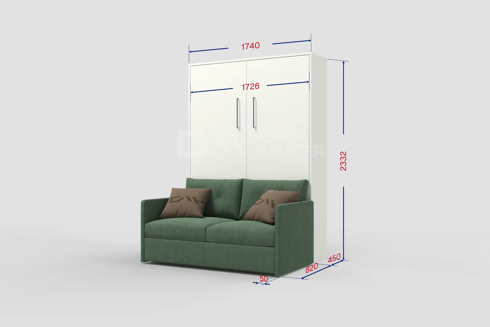 Дополнительные опции, такие как: освещение, зарядное устройство, розетки, мягкое изголовье, матрас - не входят в стоимость шкаф-кровати "Simple Start Sofa". Вы всегда можете их добавить в опциях или написав менеджеру при оформлении заказа.