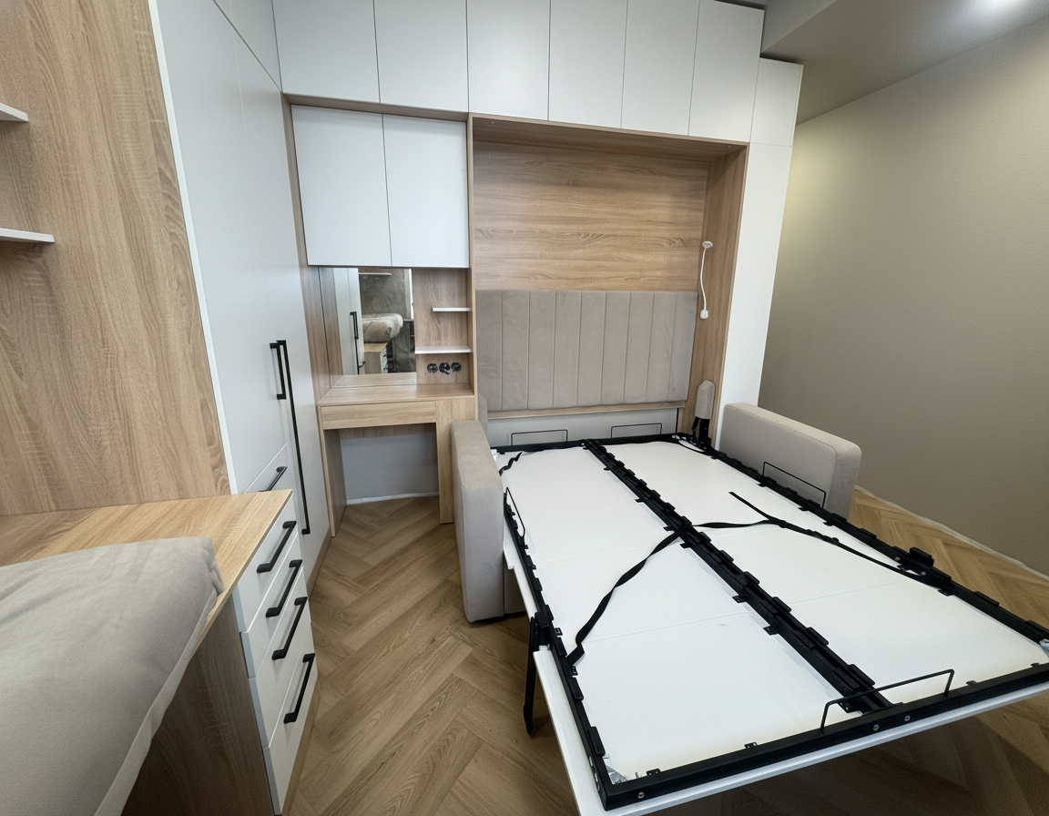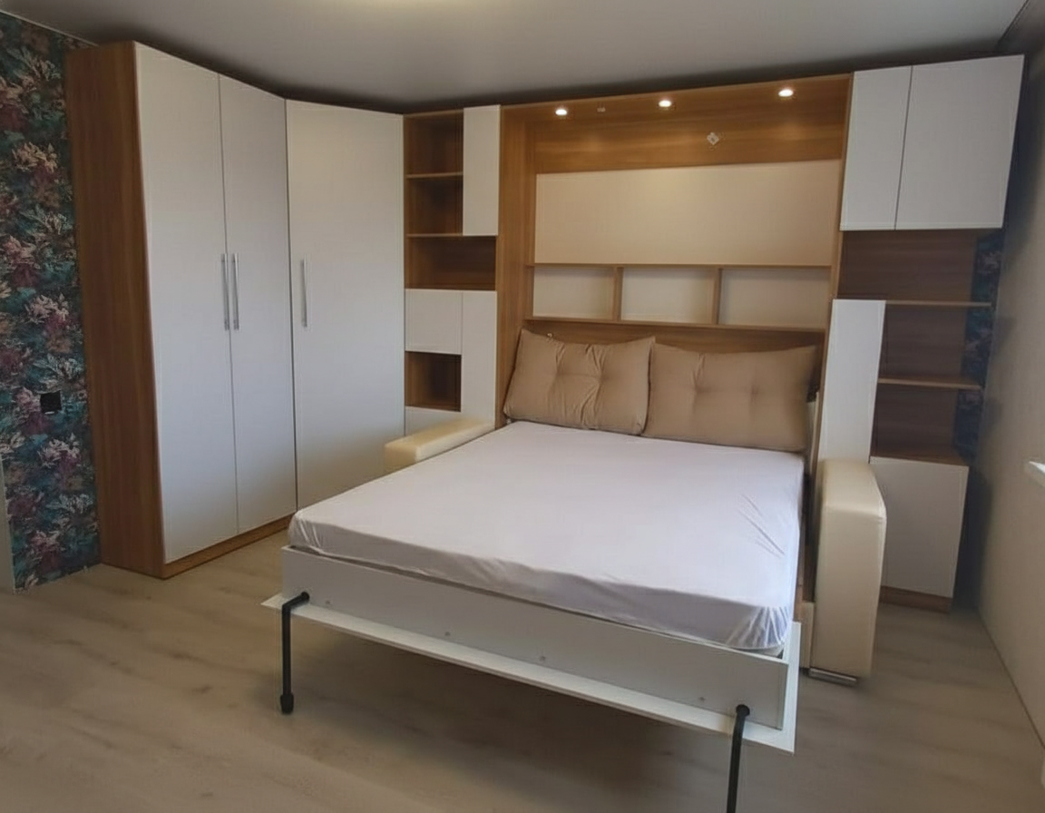 В нашей фотогалерее, вы можете увидеть, как индивидуальные проекты, так и готовые решения с изменениями цвета и габаритов. Изготовление шкаф-кровати под индивидуальные размеры спального места является обычной практикой. Когда вы обращаетесь к нашим профессионалам, вы можете указать желаемые размеры, чтобы она идеально подходила к вашей комнате.