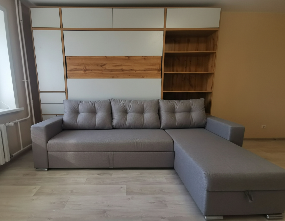 При заказе шкаф-кровати вы можете выбрать ткань для дивана и цвет фактуры ЛДСП (ламинированной ДСП). Мы предлагаем широкий выбор тканей разных цветов и фактур, а также различные варианты отделки ЛДСП. Вы можете выбрать те, которые соответствуют вашему стилю и предпочтениям.